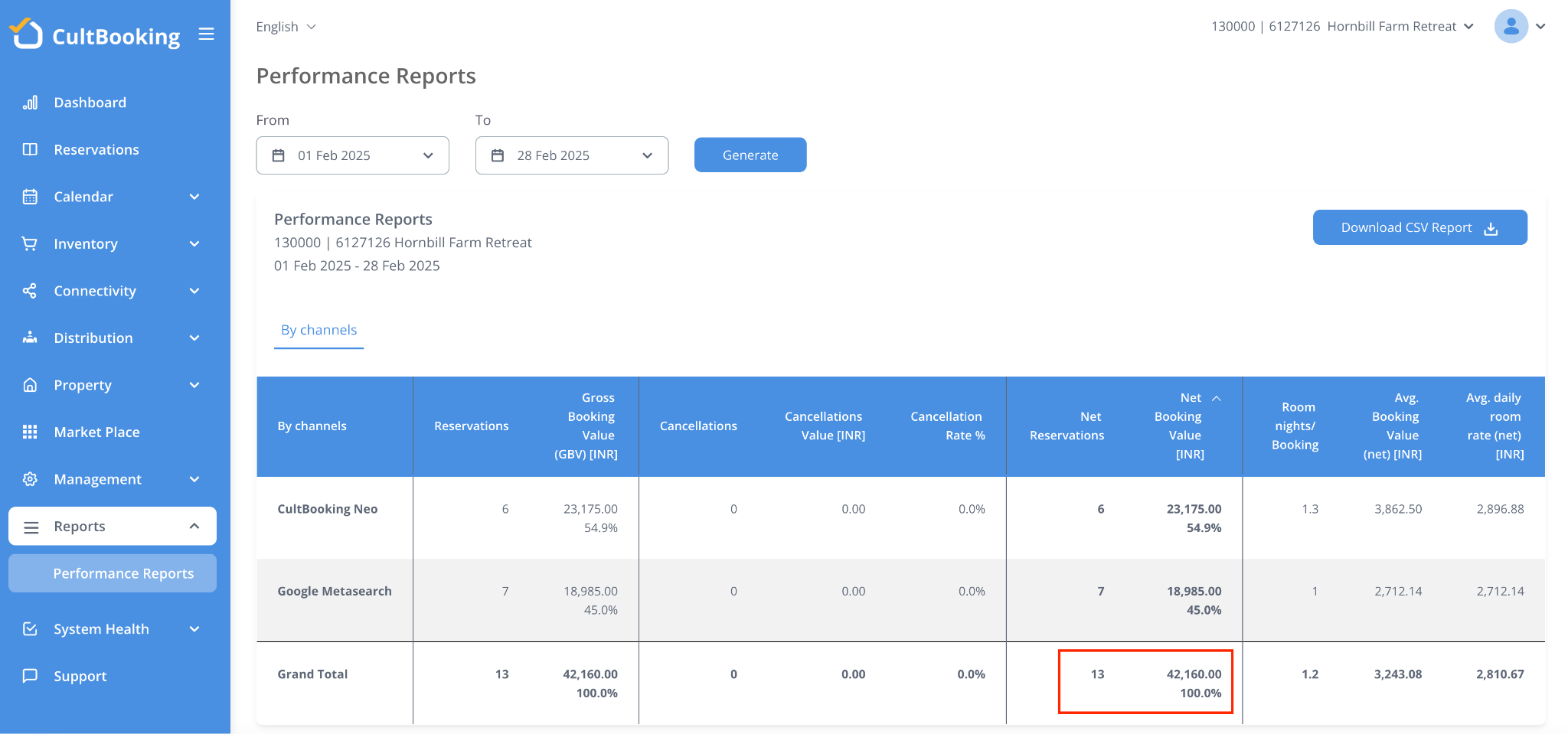- In the below example: 13 Bookings and commission will apply to Net Booking Value: 42,160 INR